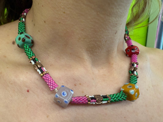 Glass Bead Las Vegas $$$ Choker by Daniela Mamom