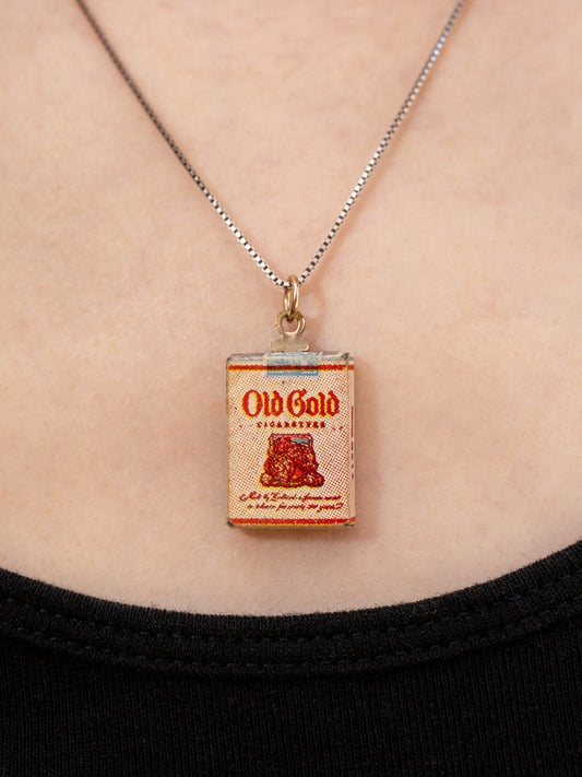 Pied a Terre 1960’s rare tobbaciana old gold wood and paper charm on 14k jump ring