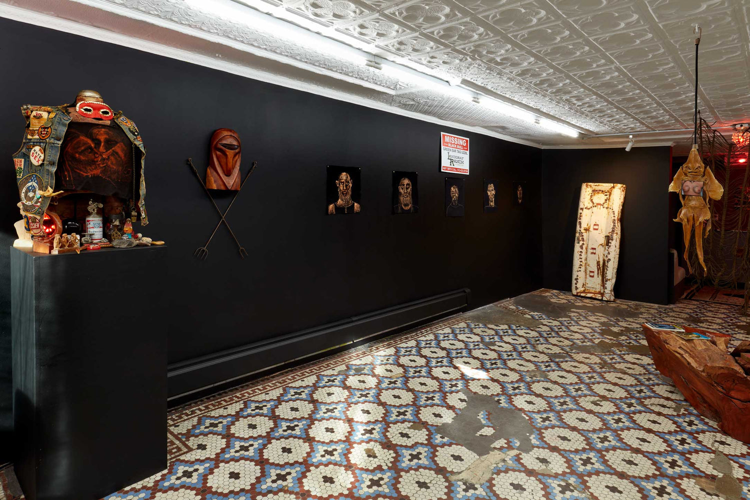 sculptures masquerading as tiny altars, burnt figure paintings on linen made with